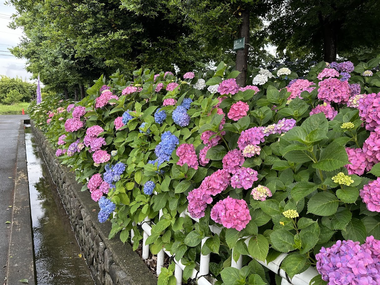 全体的にみると7割ぐらいでしたが、満開に咲いている場所も何ヶ所かあり、梅雨時期の素敵な景色を見ることができました。